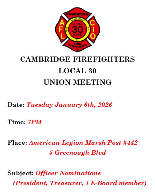 Today, the results for the recent election of a member to serve a three year term on the Cambridge Retirement Board beginning October 1, 2025 have been tabulated. I have overwhelmingly been elected with great support from both active and retired members of the Cambridge Fire Department. I graciously accept the honor and appreciate the support from all who voted for me. The results are 789 to 142. Thanks to all.
